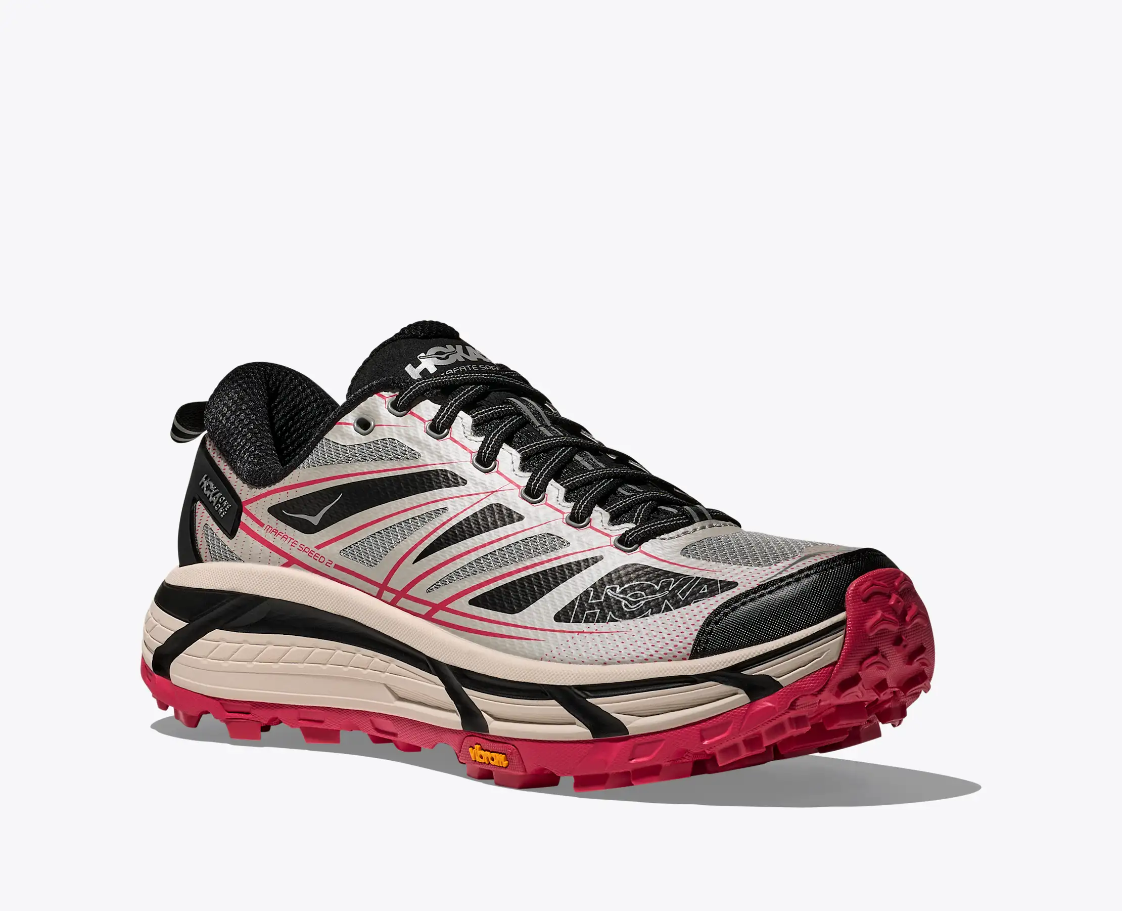 The Mafate Speed 2 was built to offer support and cushioning in technical terrain over any distance. This update features a deep Active Foot frame for support, and a tuned Meta-Rocker to facilitate smooth transitions through the gait cycle. The outsole utilizes deep flex grooves to adapt to a variety of terrain, and the 5mm Vibram Mega-Grip tread grips even the trickiest surfaces. The Mafate Speed 2 is ready to perform mile after mile, however far your trail adventure takes you.