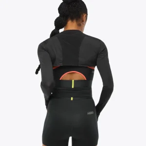 Designed to pair with the Race Day Bra, our Race Day Shrug provides extra warmth during brisk morning runs and additional coverage when the skies clear. Offering a touch more coverage for our modesty-minded runners along with rear drop pockets for stashing nutrition, our airy mesh material allows for maximal breathability and minimal weight.